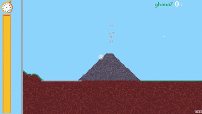 but also, i've actually been putting a ton of time into a brand new game for the first time in a while! my crossword phase hitting me like a truck (seriously how was i ever putting out grids every three days) definitely siphoned alot of time away from making video games but i'm starting to find more of a balance where i'm working on both. i don't think i'll ever be a proper devblogger but a brief update and a screenshot or two: i'm making a party game that's like Ultimate Chicken Horse, but it's golf and also a FALLING SAND GAME (15)! players race to complete a hole of golf, then race to pick substances to draw on the hole with and turn it into a totally new challenge of their own creation every round!